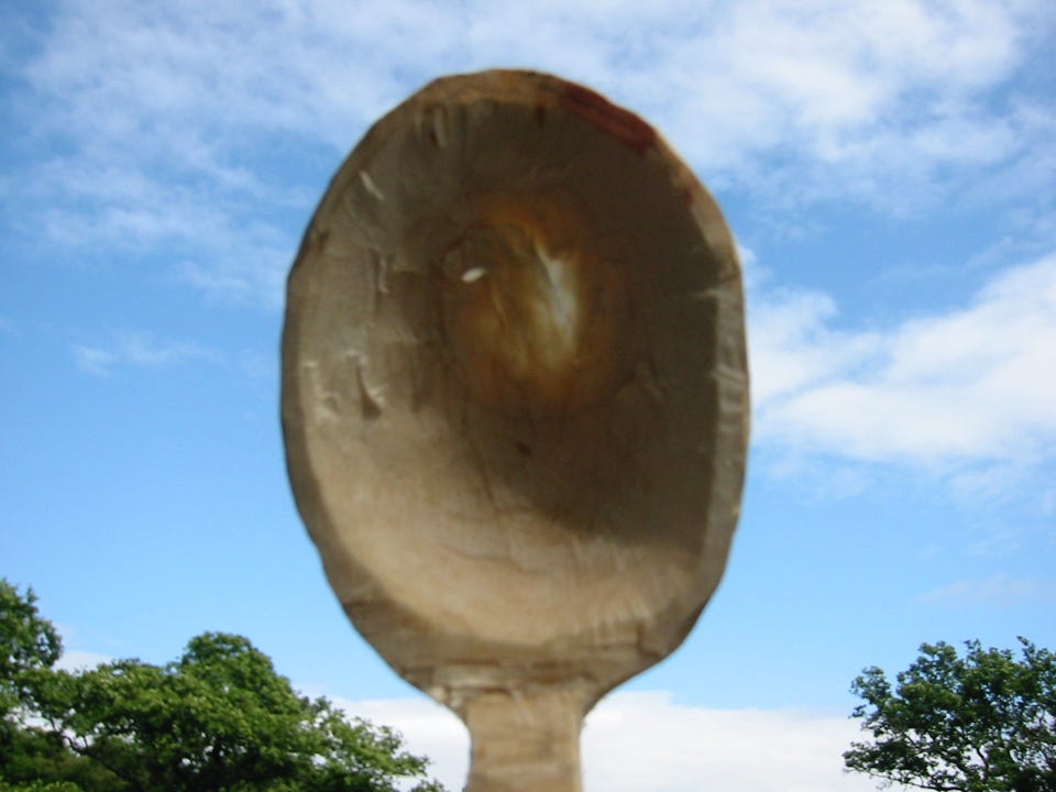 In this spoon the carver has become too enthusiastic and has made one part of the bowl too thin. For some designs an almost translucent bowl will feel great in the mouth and the thin wood can be strengthened by an oxidising oil treatment such as raw linseed or walnut, but in this case the layer of wood remaining is too thin. To avoid errors such as this keep feeling the bowl with your fingers as you shape the bowl and mark any areas that should not have any more material removed with a pencil.