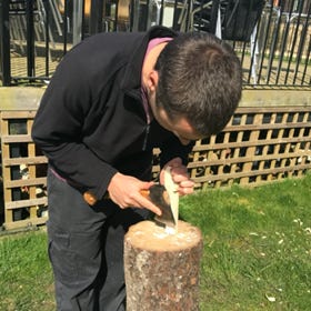 Hill End Outdoor Education Centre, Oxfordshire. Learn to carve freshly cut green wood with a sharp knife safely. Course fee covers an adult and up to two children aged 8 to 16. Morning and afternoon sessions in half term Monday 25 and Tuesday 26 October 2021. Course fee £70